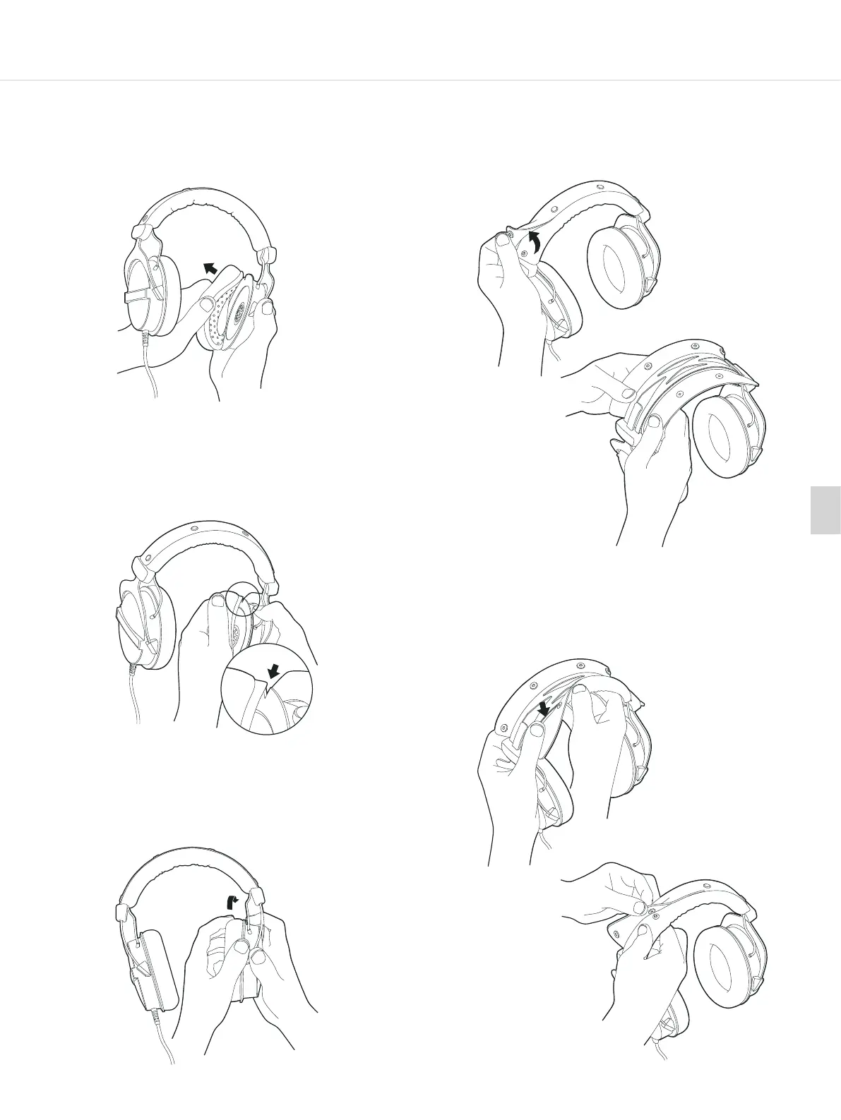u 조립된 이어패드를 몇 번 화살표 방향으로 돌리십시오.