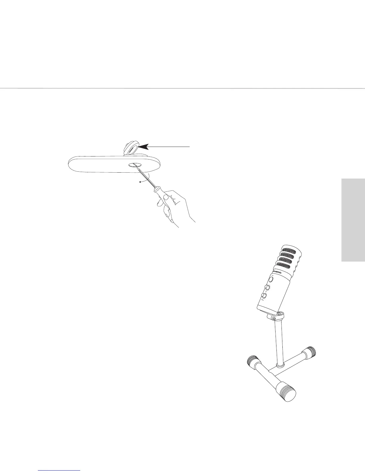 • Mikrofon mit der oberen Schraube am Stativadapter