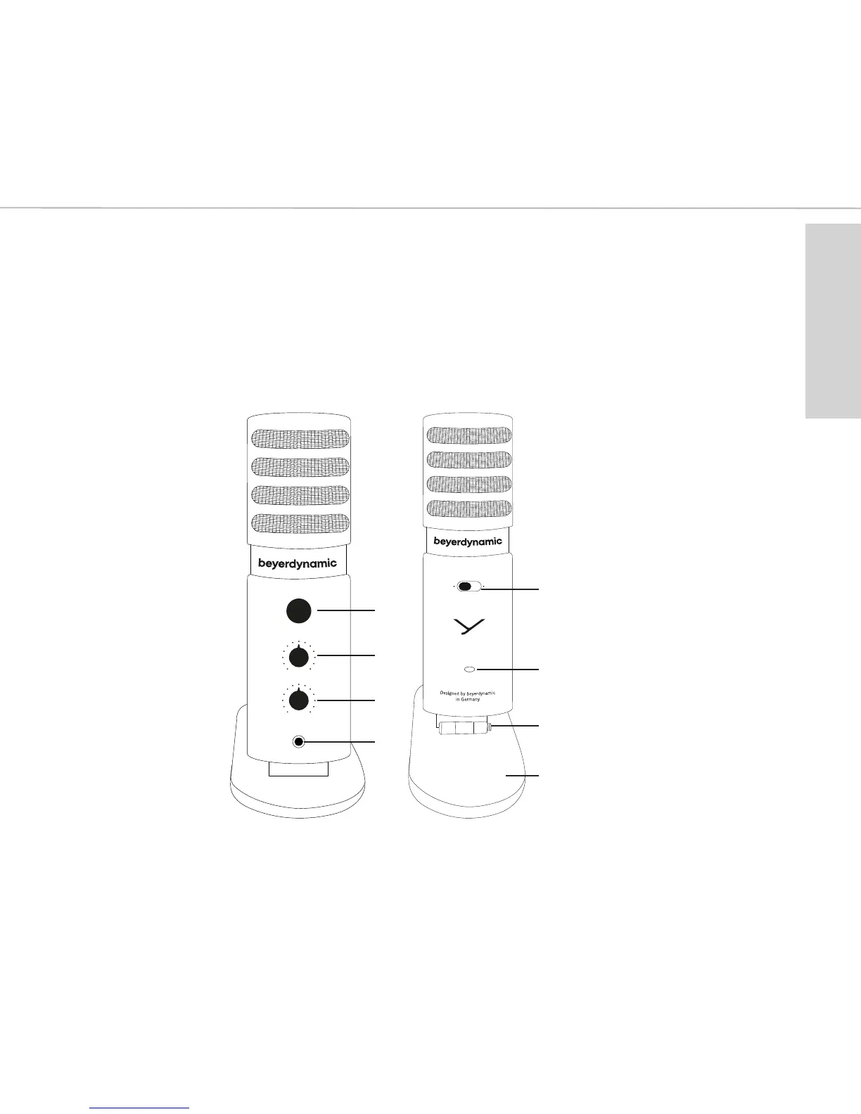 Beyerdynamic FOX - Microphone Controls and Features; Audio Level and Mix Controls; Mute Function and Output Port; Gain, USB, and Mounting