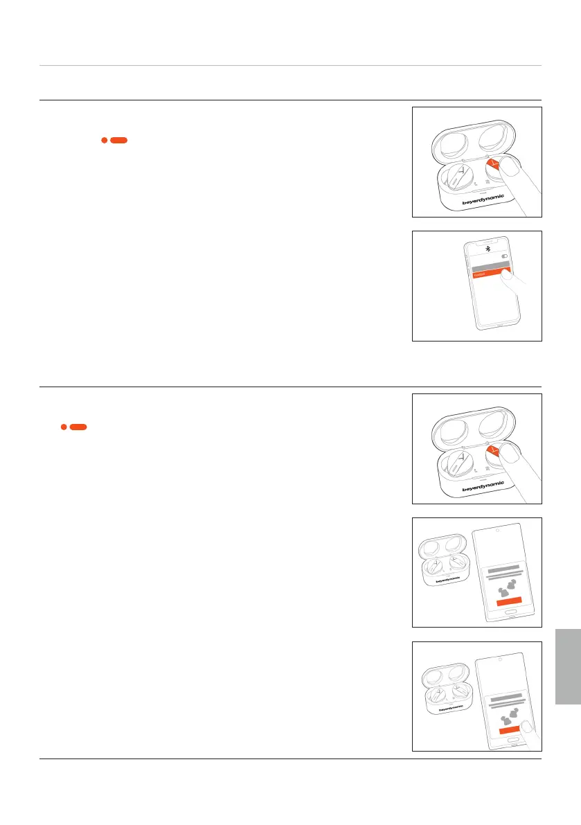 イヤホンが充電ケースにある間、LEDがオレンジ色と青色に交互に点