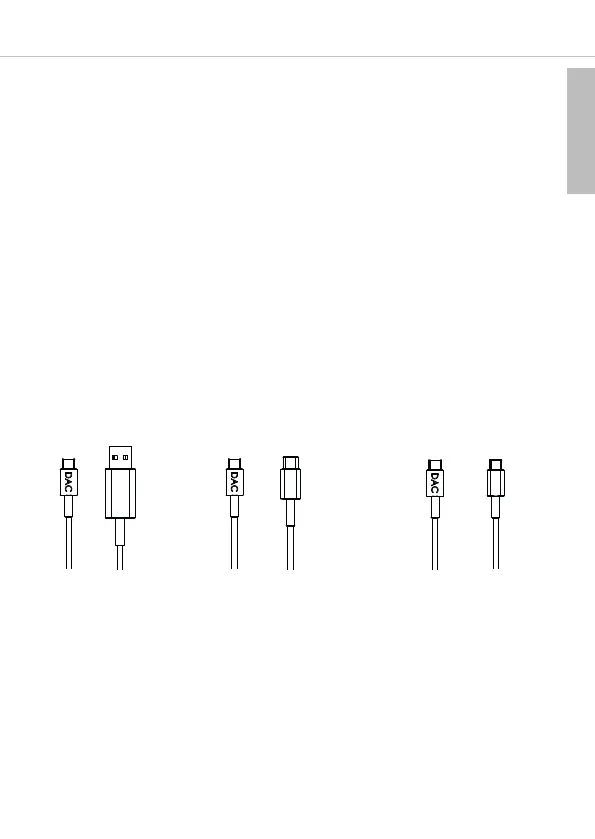 Impacto essential에는 컴퓨터, 태블릿 및 스마트폰에 연결하기 위한 3개의 케이블이 함께 제공됩니