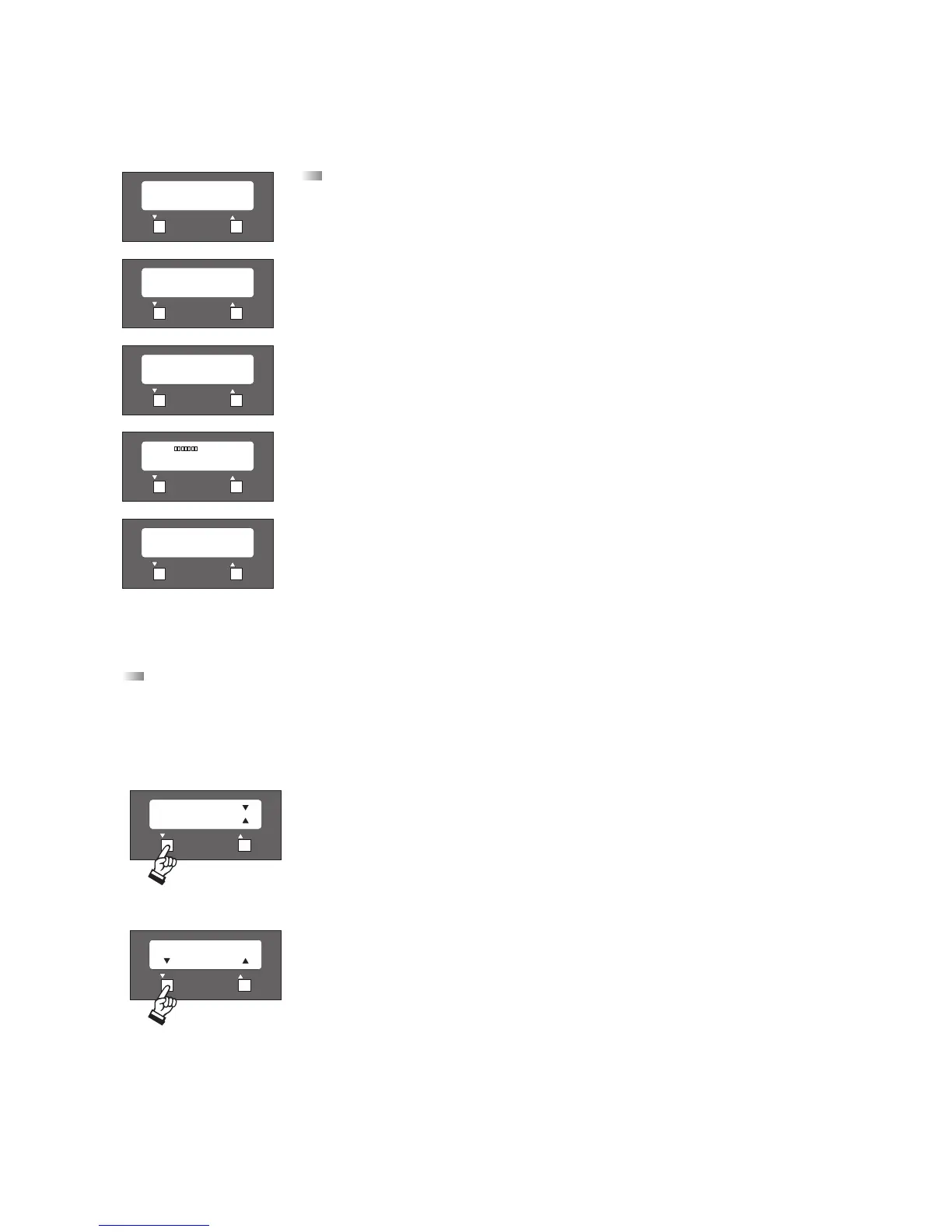 display indicate which buttons of the device have to be pressed, left (Reset) = ▼, right (N.o.m.) = ▲. To exit the individual menu items