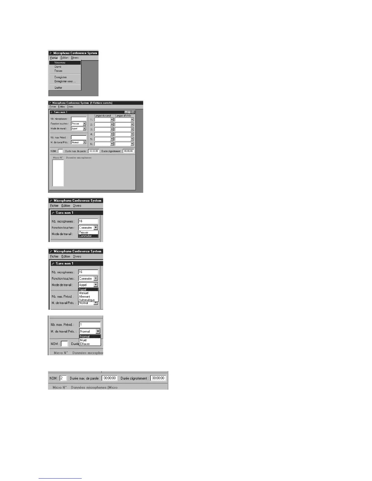 Vous pouvez choisir entre le mode «Presser» ou «Commuter» pour le bouton microphone de chaque