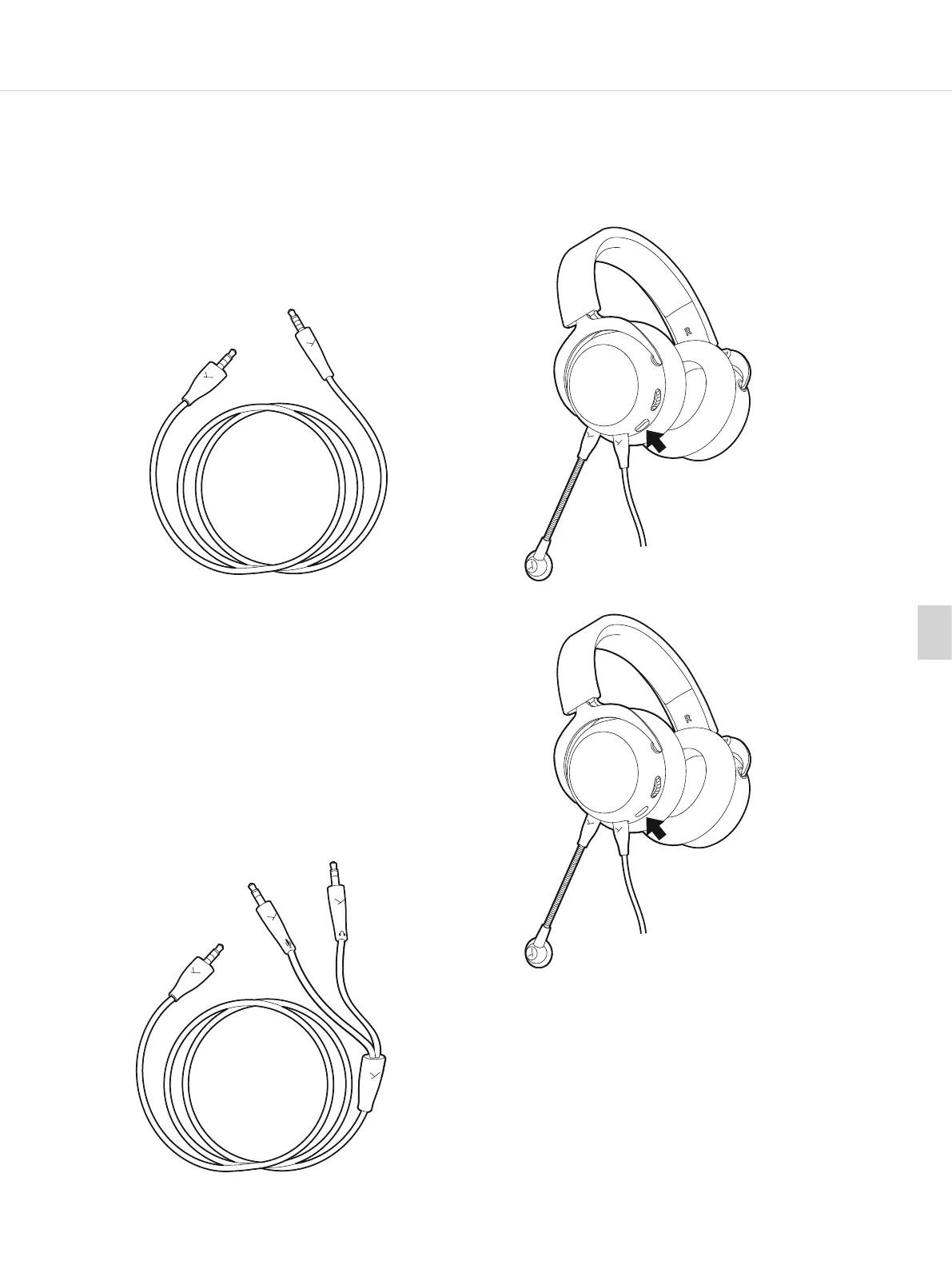 将扁平 5 针耳机插头插入头戴式耳机并将两个圆形 3 针耳