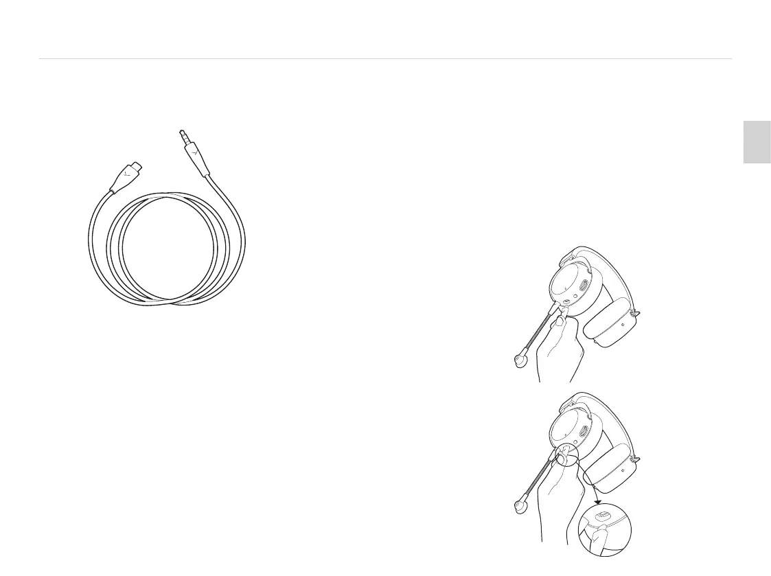 � 将 USB 插头插入头戴式耳机并将耳机插头插入设备。由麦克风录制的