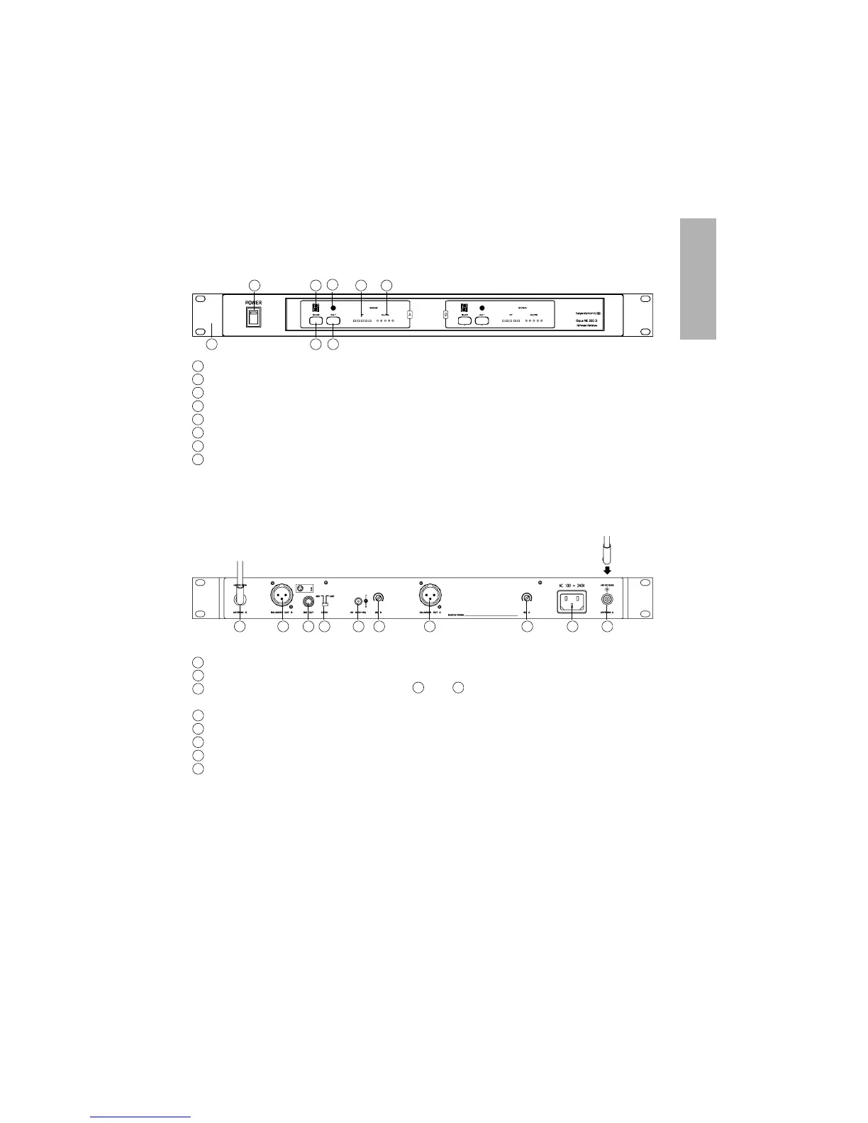 Mic/Line-Pegel-Schalter für NF-Ausgang und . „Mic“ für Mikrofonpegel, „Line“ für