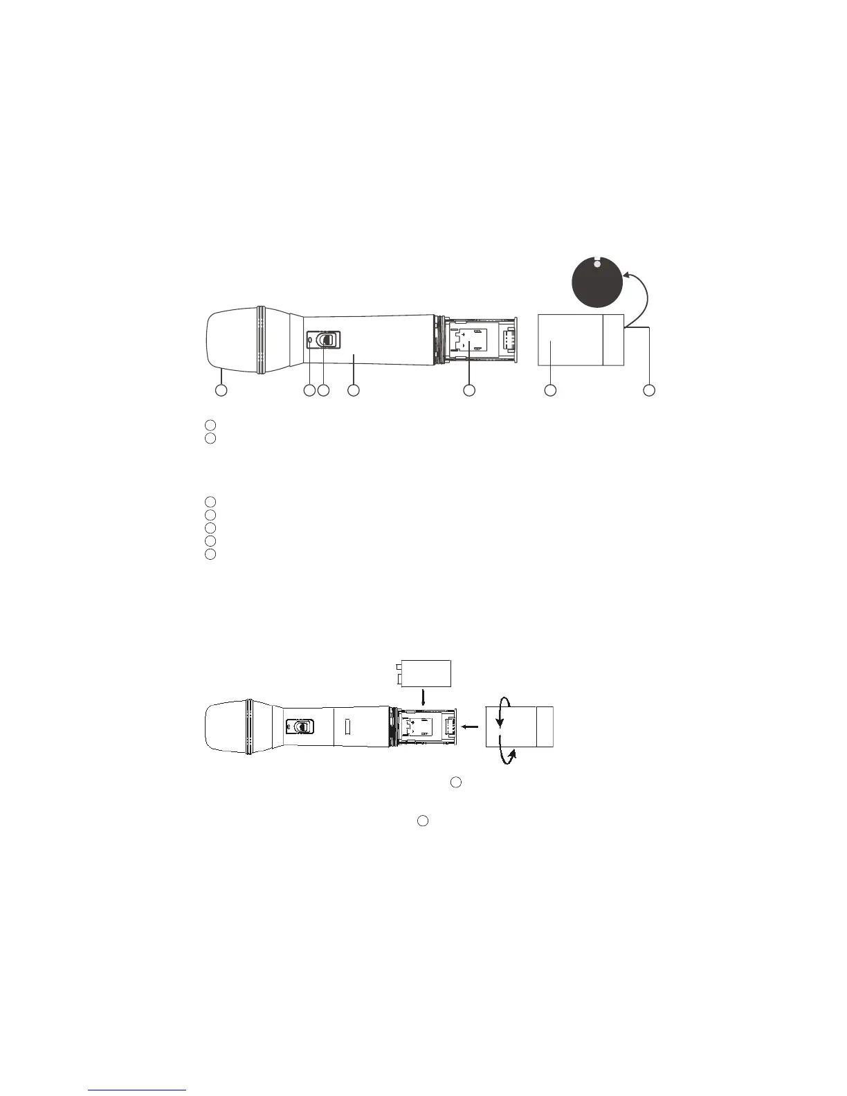 Affichage pile: indique l’état de commutation et de la pile. Si le micro émetteur est bran-