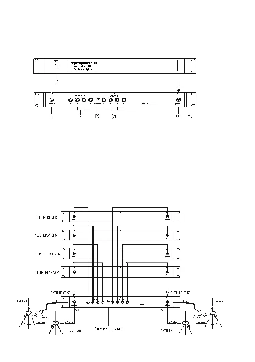 On-off switch and power on LED. When the antenna splitter is switched on, the red LED will illuminate.