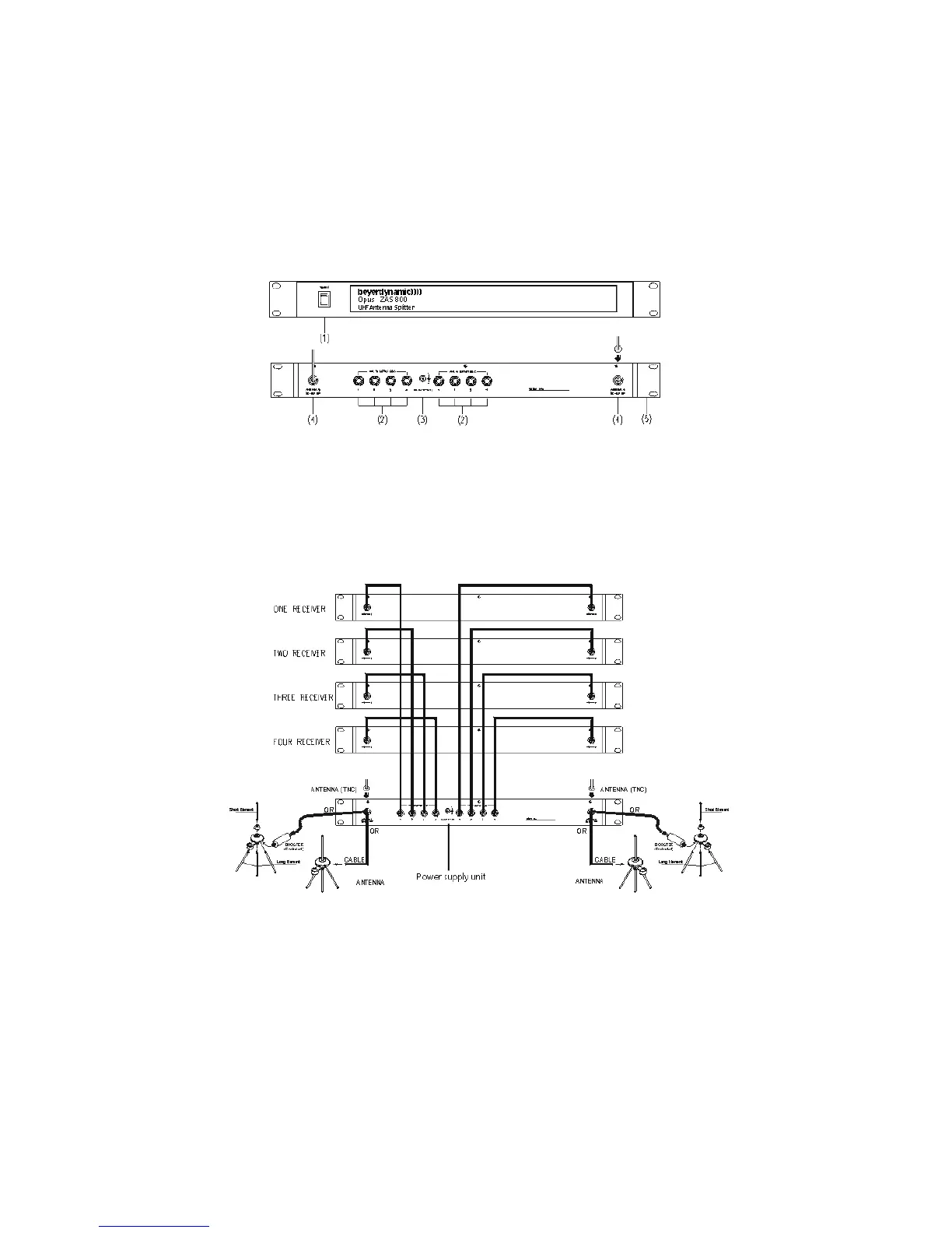 (1) On/Off switch and power on LED. When the antenna splitter is switched on, the red