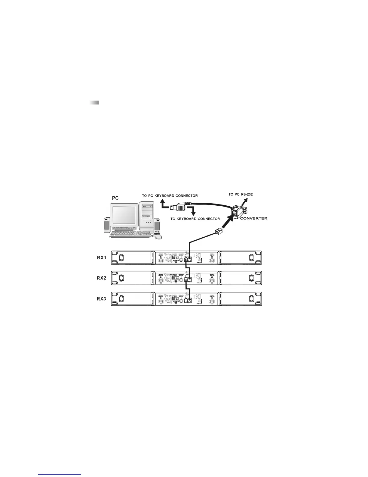 • Connect the IN-socket of the first receiver (RX 1) to the converter.
