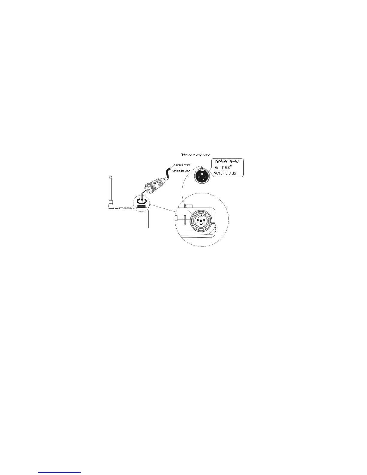 4. Raccordez le microphone à la prise d’entrée (1) et fixez la fiche en la tournant dans le sens