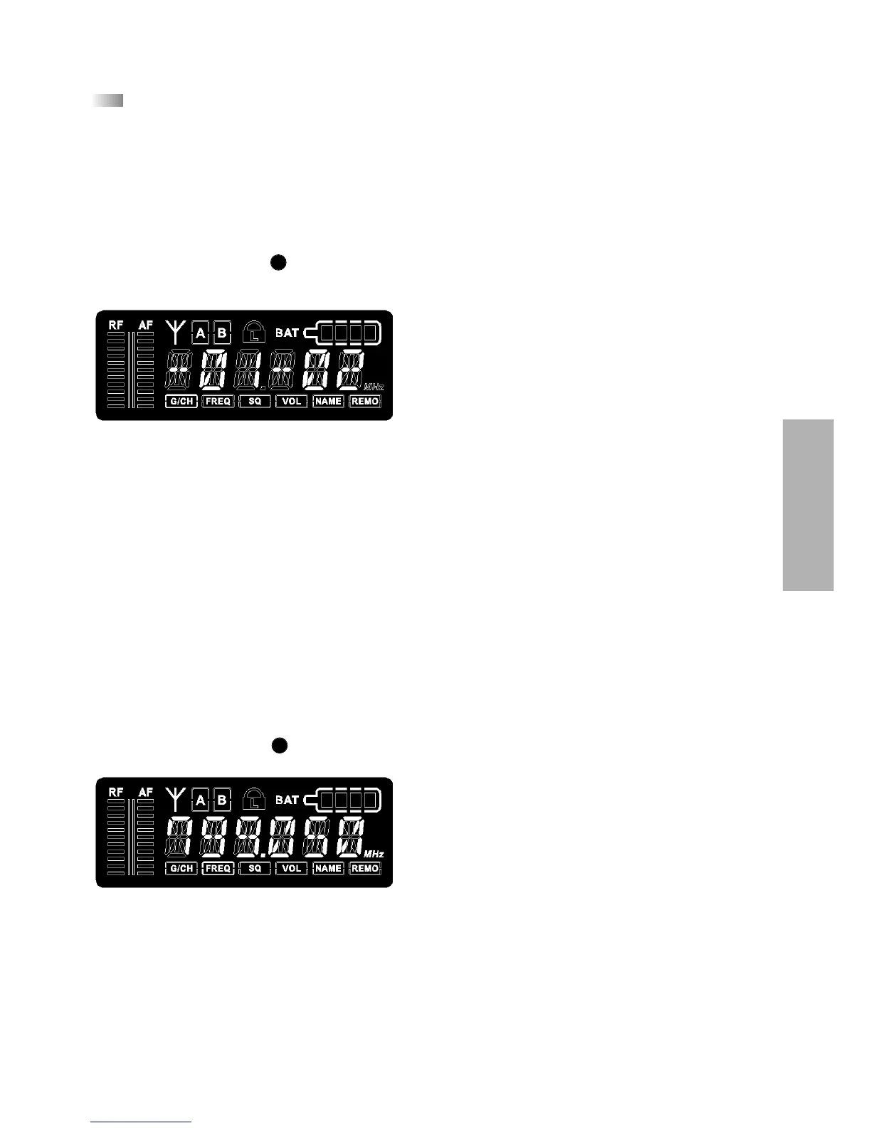 frequency (MHz) can be selected in steps of 1 MHz. In order to confirm press the menu