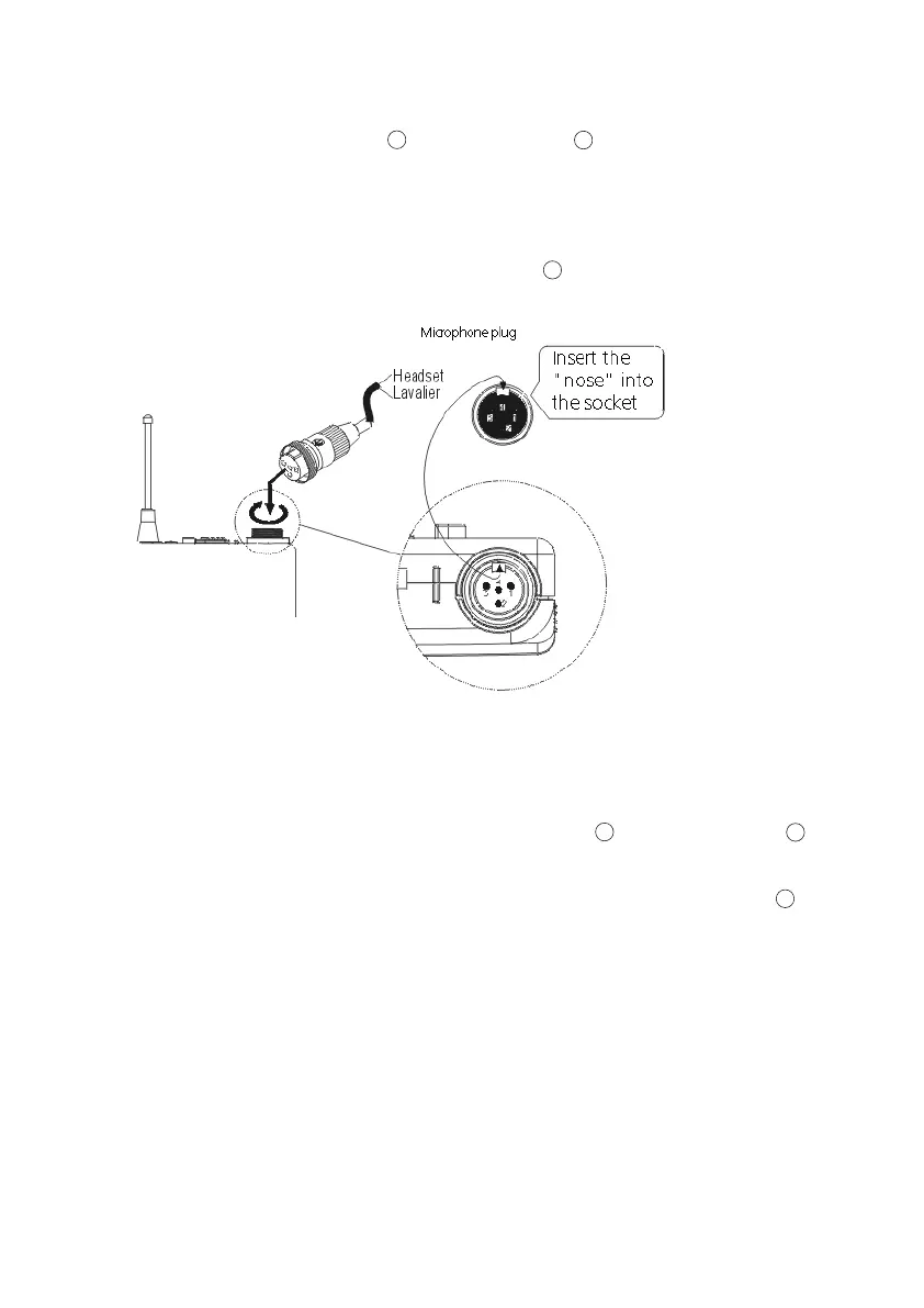 4. Connect the microphone or instrument to the input socket . Refer to illustration below.
