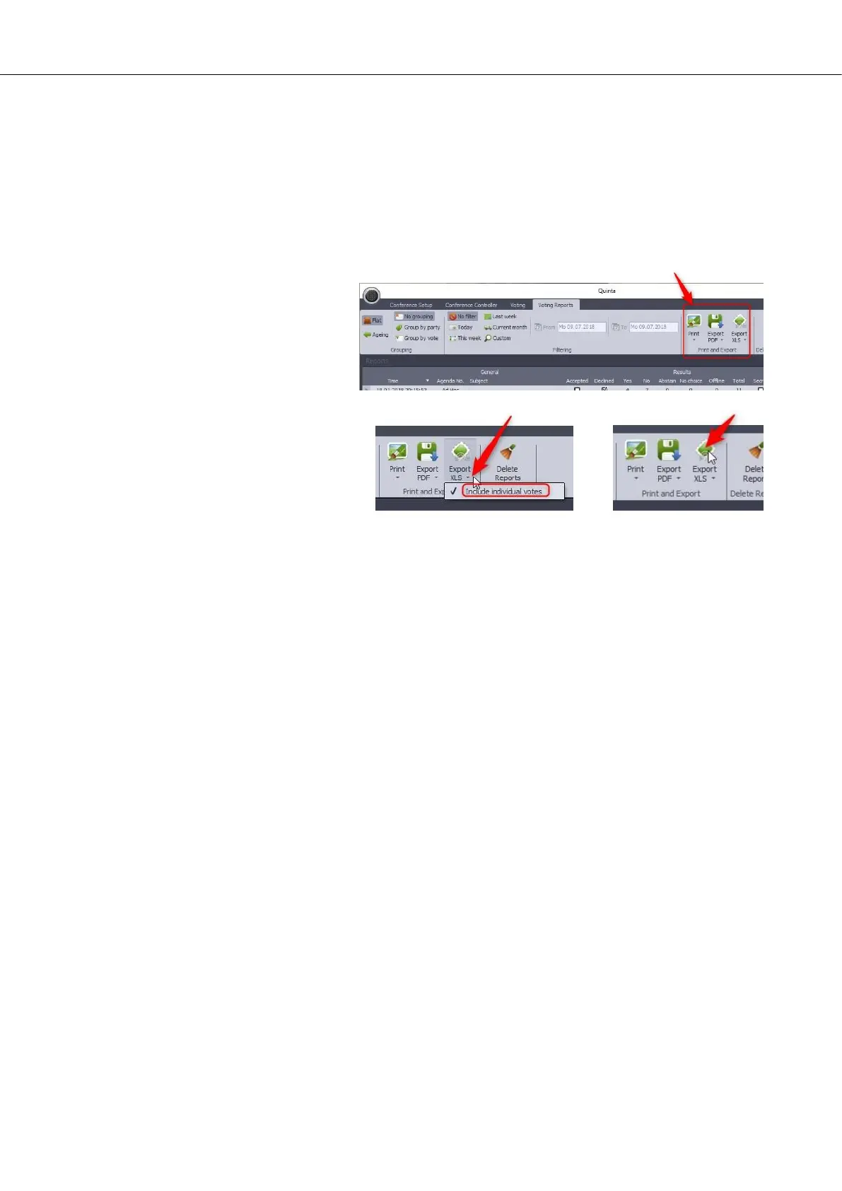 c) Click on the tab “Voting Reports”. The ribbon section “Print and Export” offers three different ways