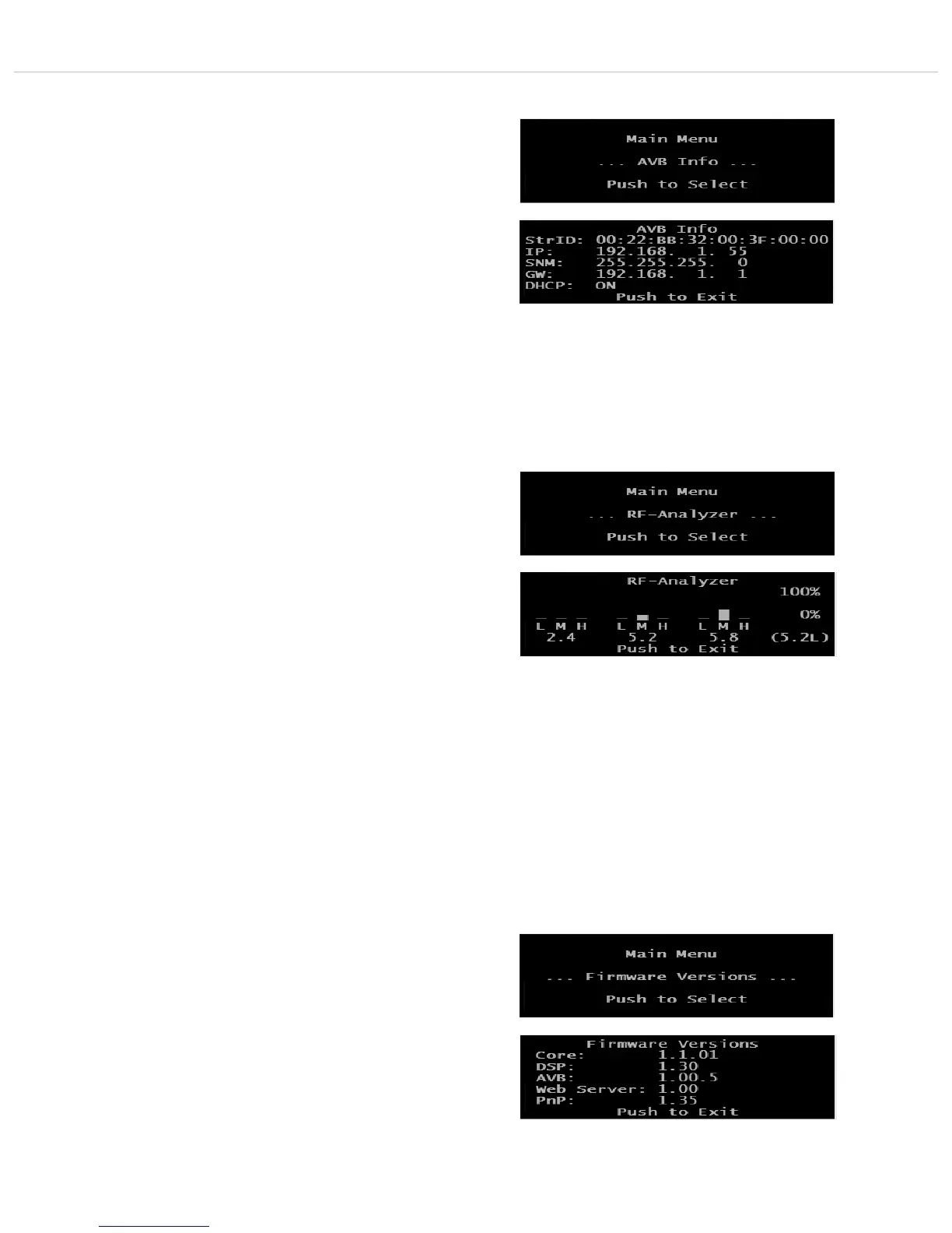 • The firmware versions of Core, DSP, AVB, Web Server and PnP