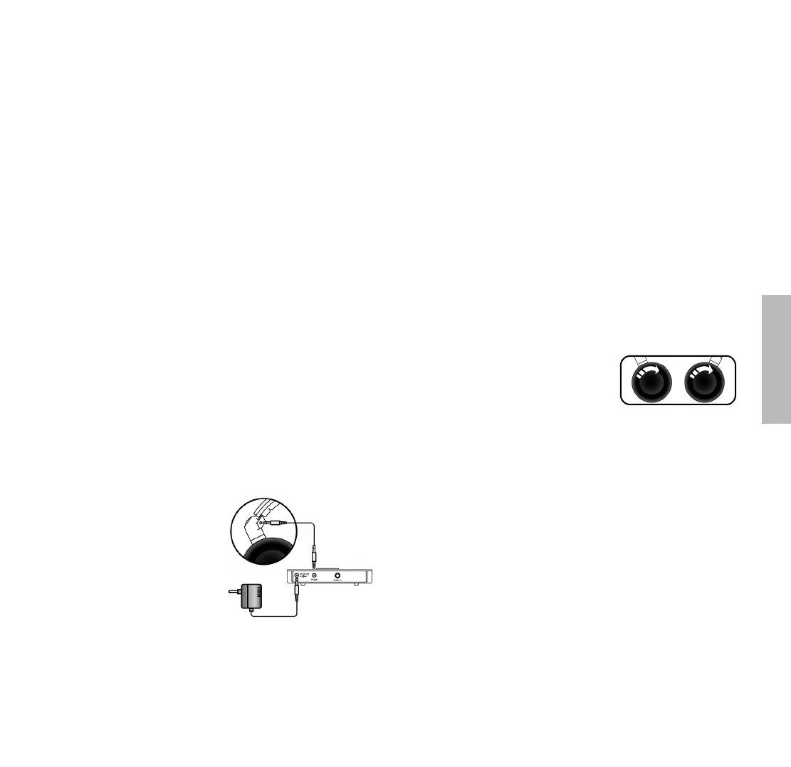 • Switch the headphone on . The Power on LED will illuminate green.