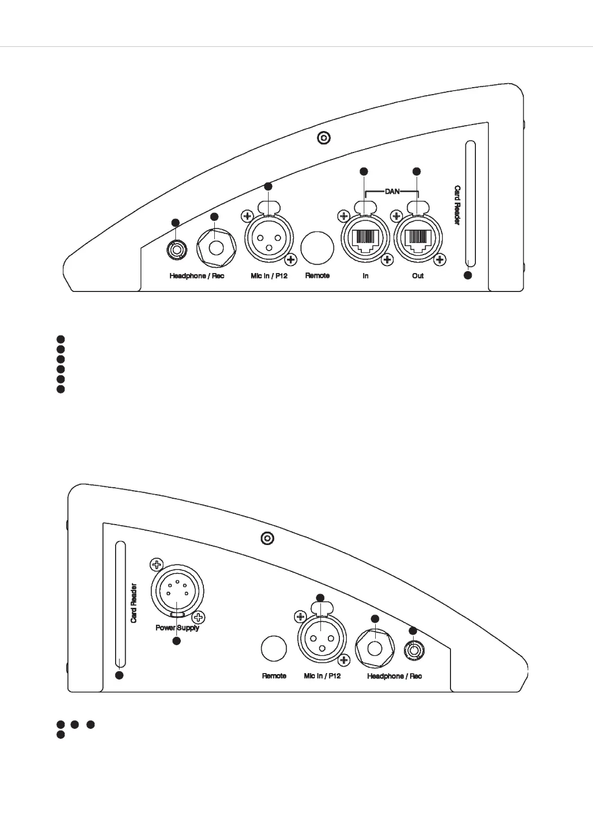 Headphone connection 3.5 mm jack (1/8"), also for the connection of a recorder