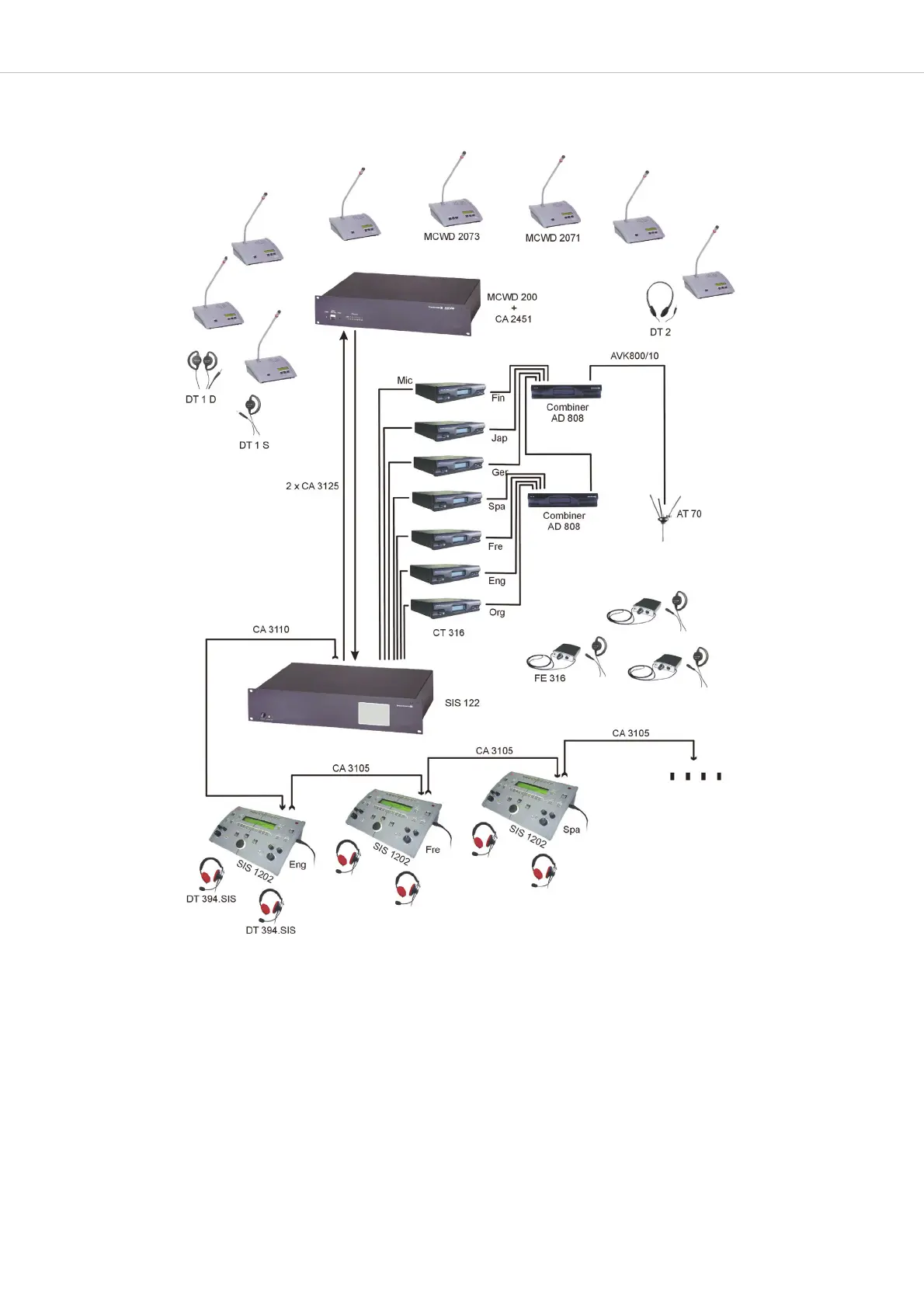 1 x MCW-D 2073 Chairman station with display and headphones to listen to the foreign languages