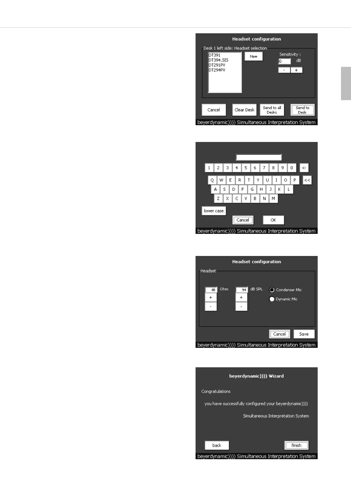 • The settings can be sent to all interpreter stations by pressing the “Send
