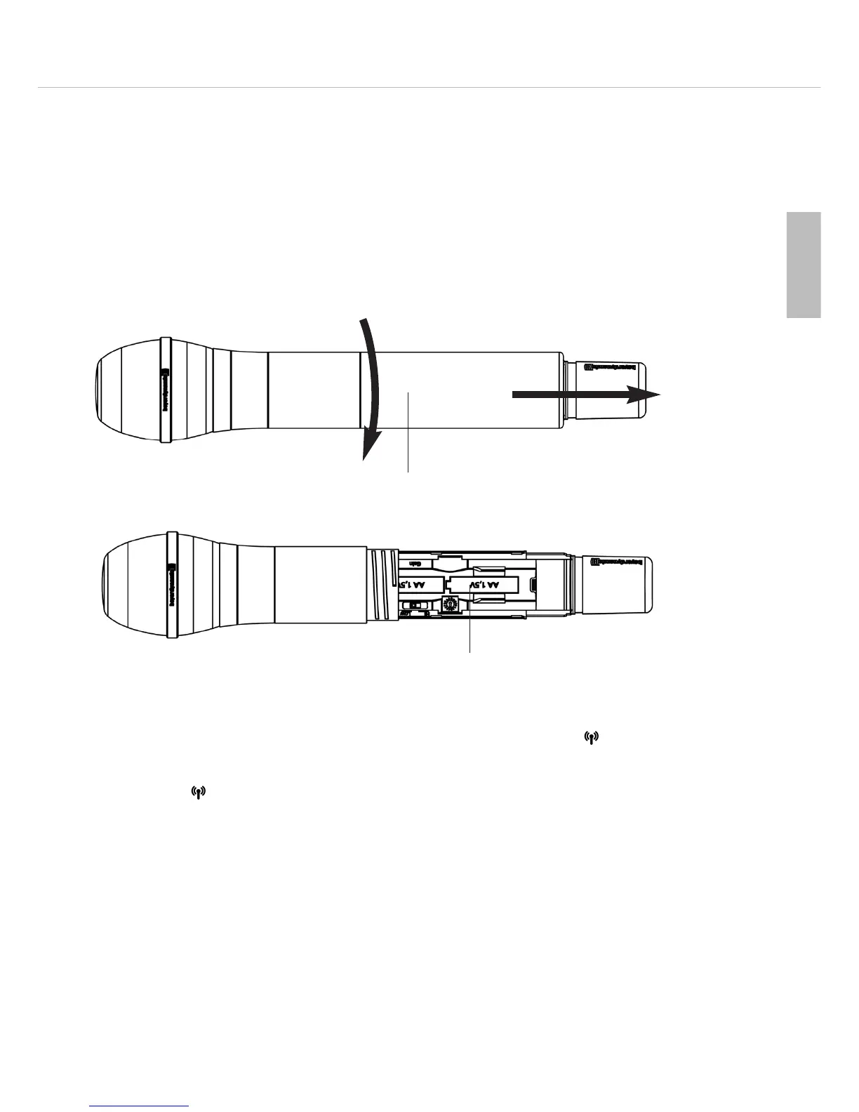 • Turn on the handheld transmitter by holding the on-off button pressed. The transmitter is ready