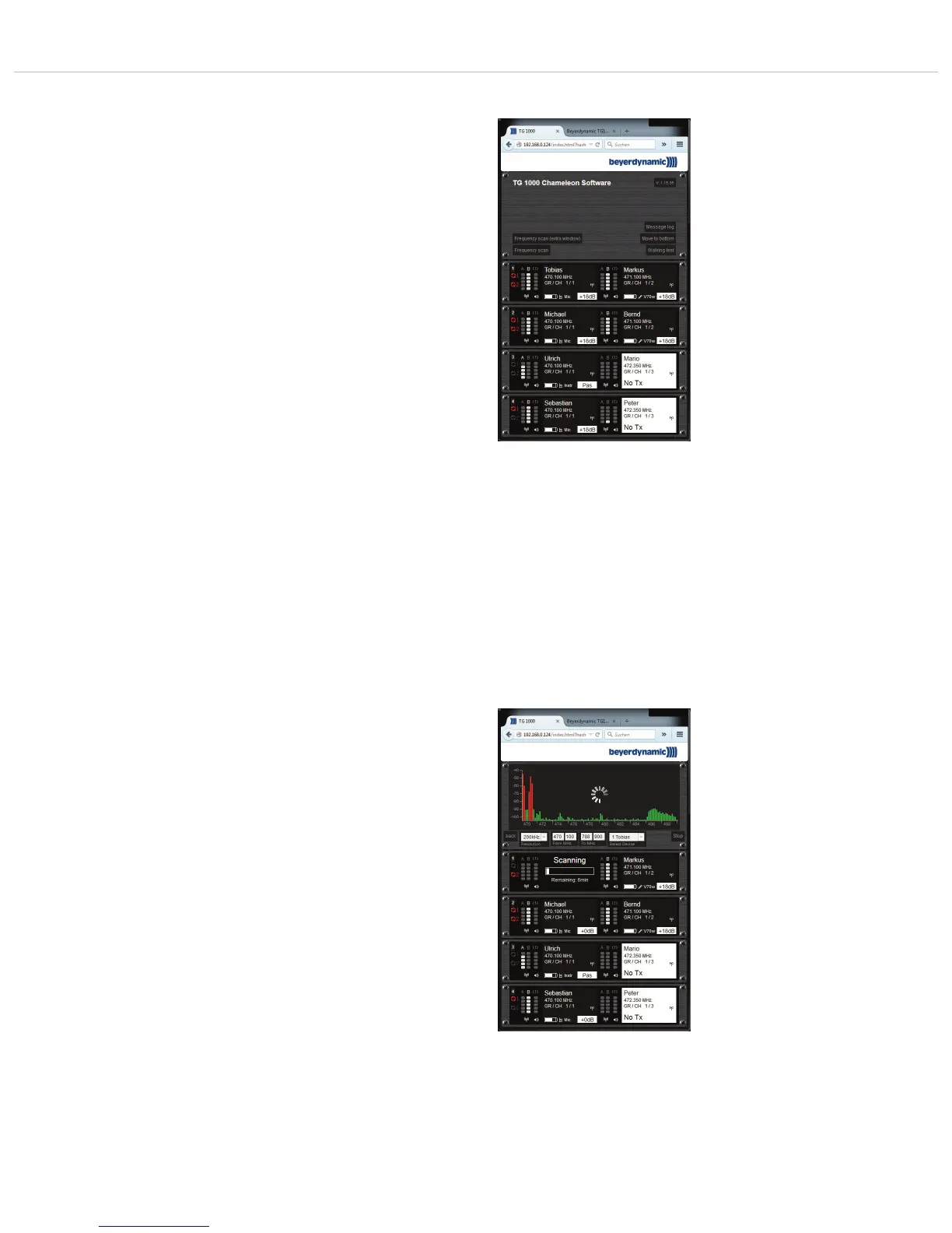 Note: If there is a TG 1000 transmitter active on one channel,