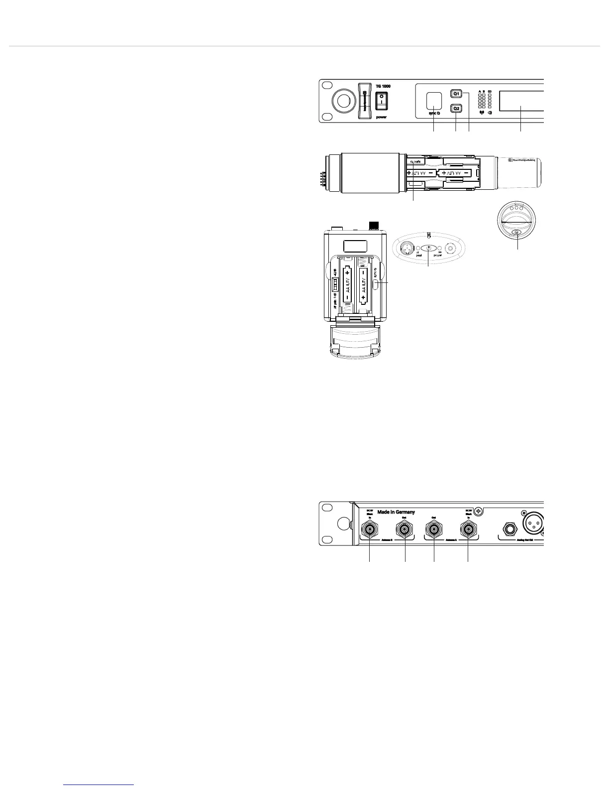 • Press the on-off button of the handheld or beltpack transmitter