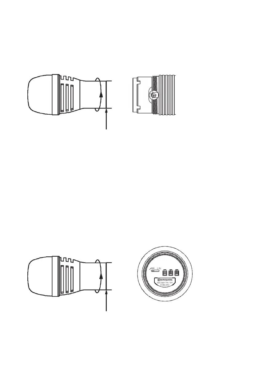 • Pour régler la sensibilité, dévissez toute la tête du microphone dans le sens de la flèche.