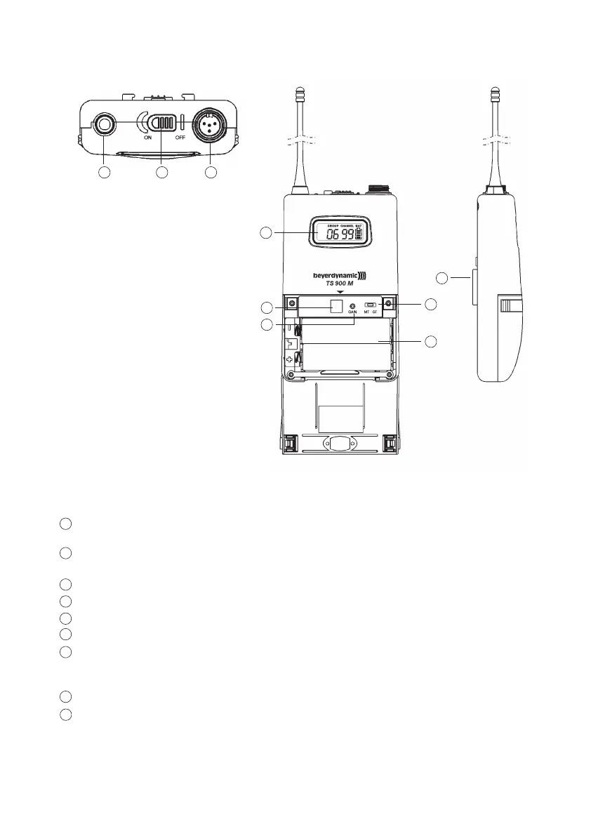 Entrée BF, mini prise XLR 4 pôles pour microphones (micro-cravate ou serre-nuque).
