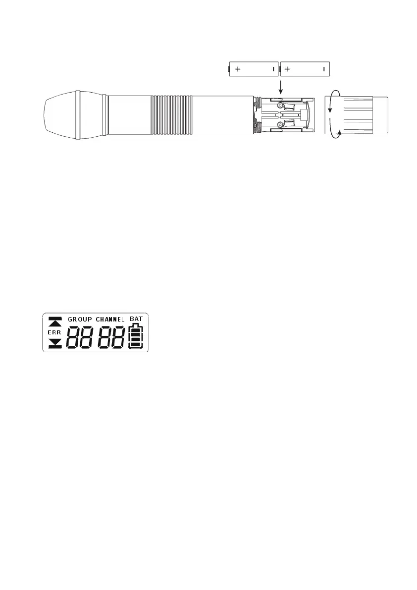 2. Introducir dos baterías en el compartimento vigilando las marcas de polaridad.