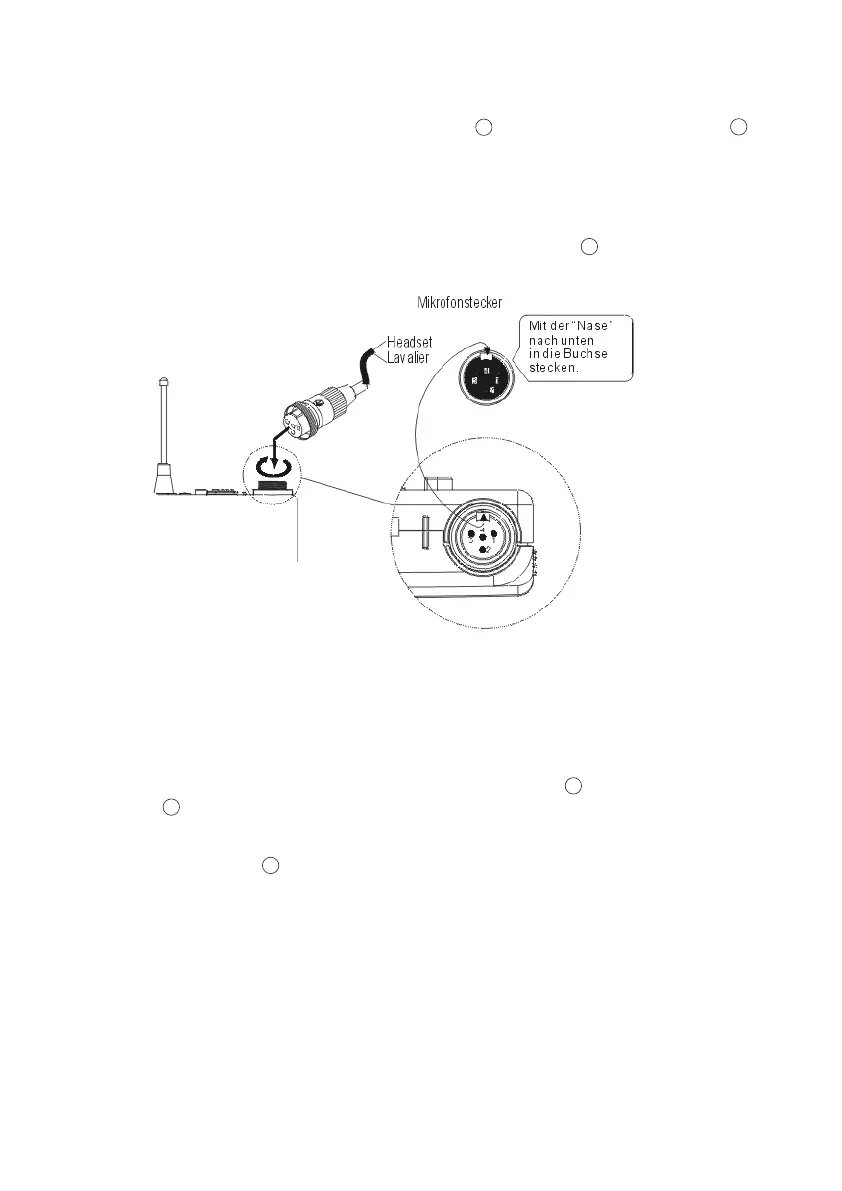 1. Schalten Sie den Taschensender TS 900 mit dem Ein-/Ausschalter ein. Stellen Sie den Gain-