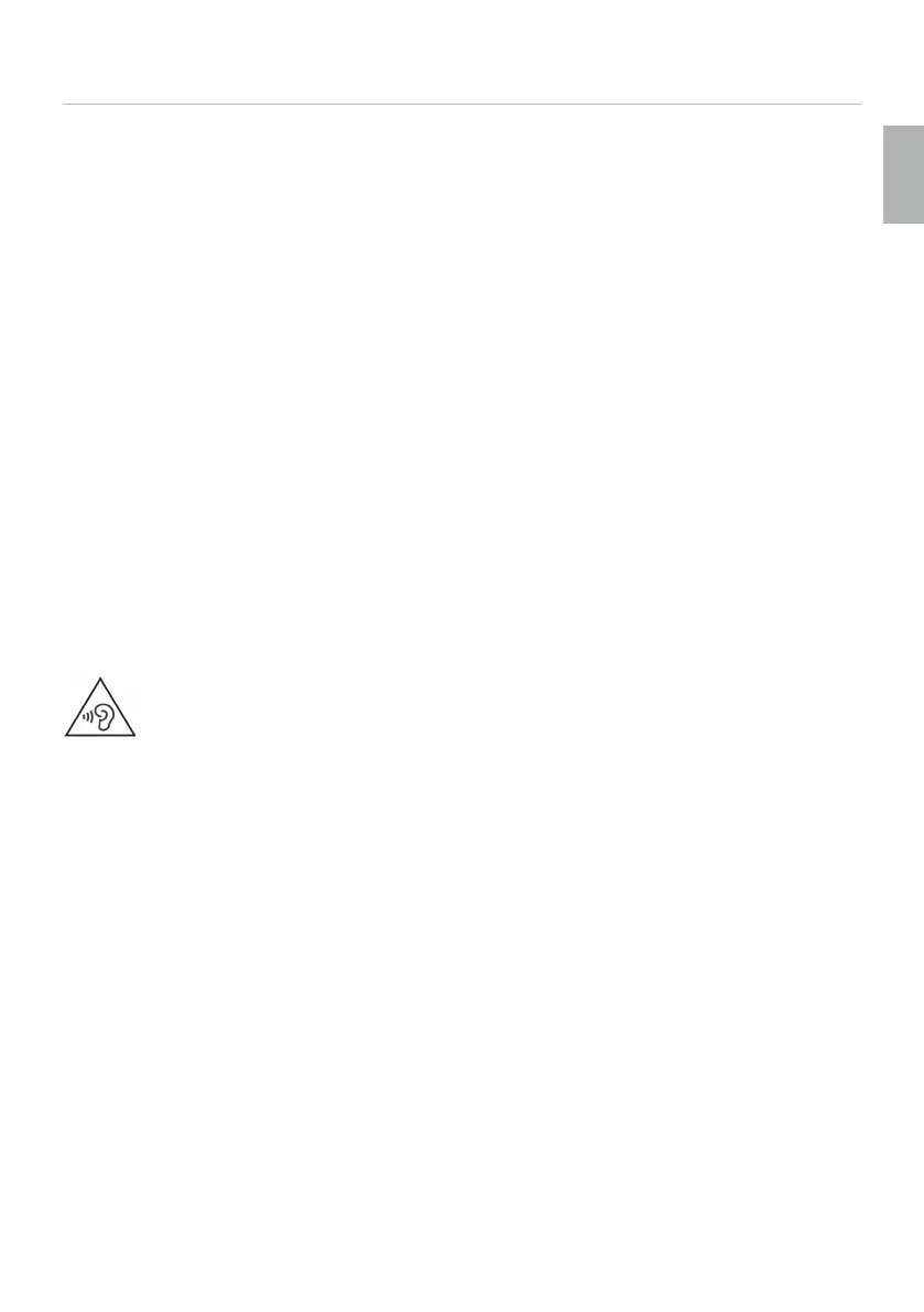 damage. Hearing impairments are irreversible, so always make sure that the volume