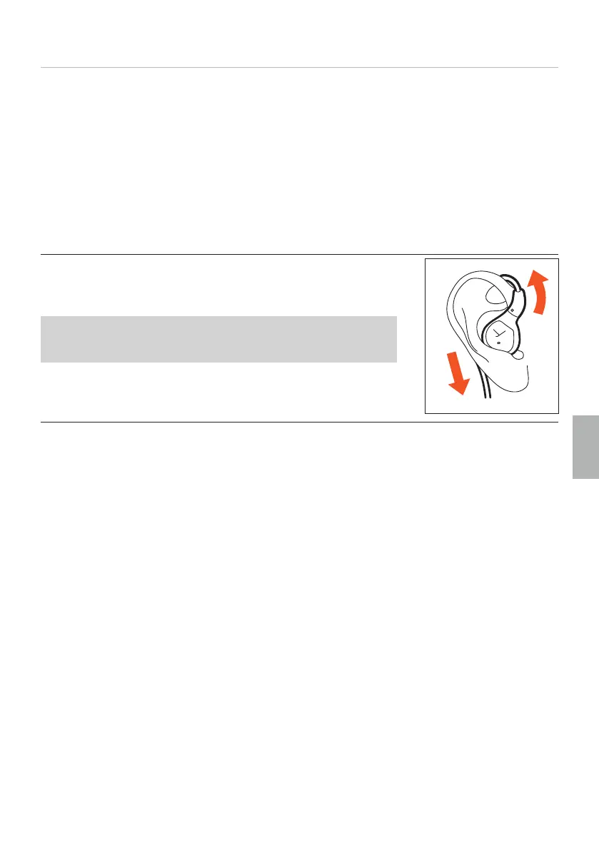 ► Sätt in hörsnäckan i örat och dra kabeln uppåt bakom