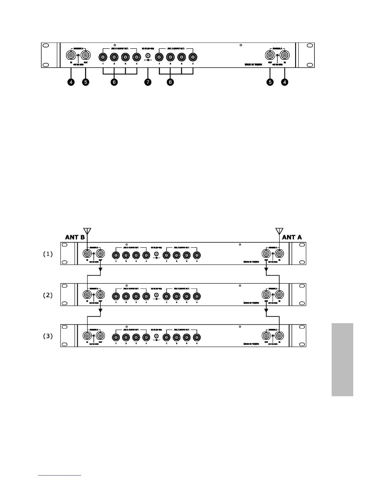 Sortie de séparateur d’antenne : fournit les signaux d’antenne Diversity pour jusqu’à quatre