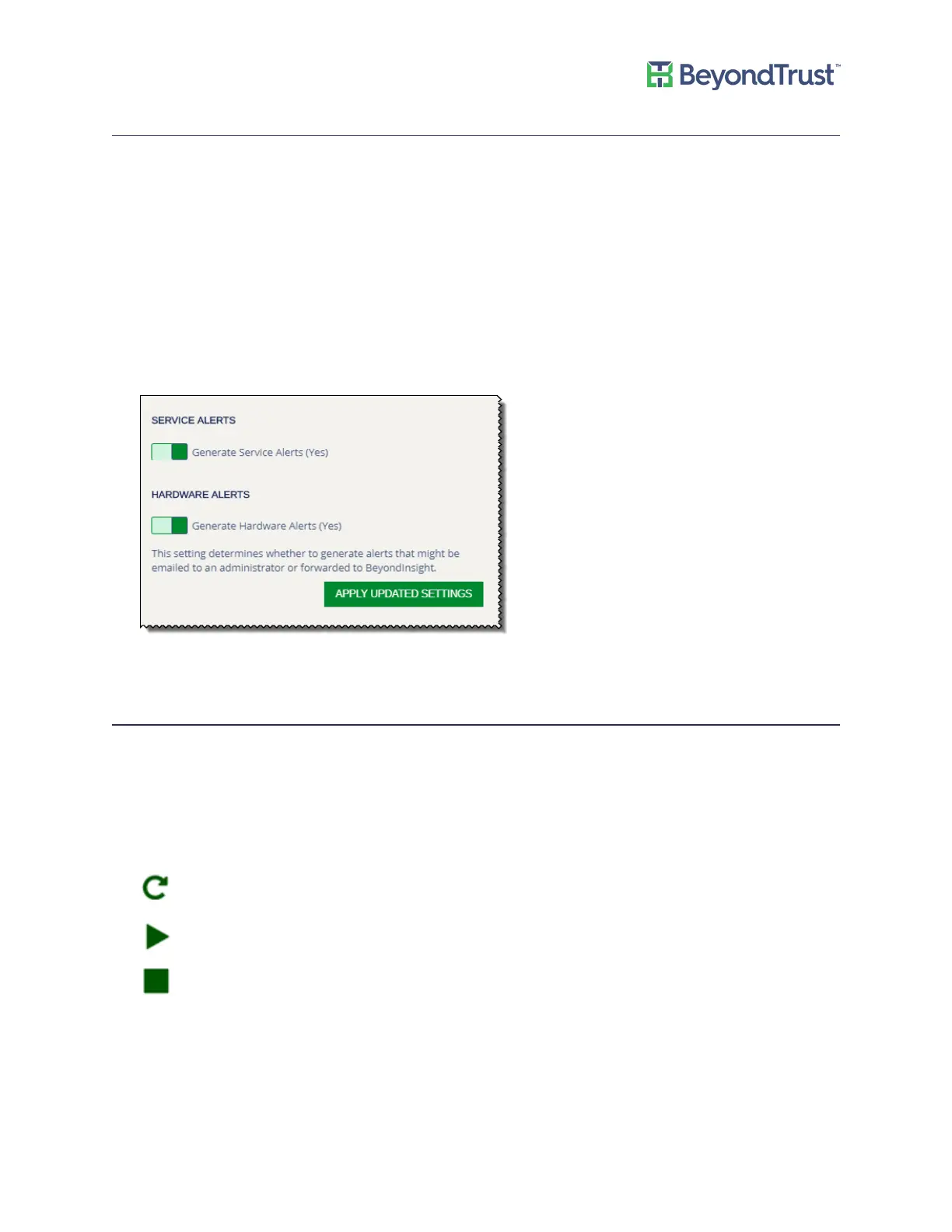 state, considering the current roles that are set. Additionally, alerts are indicated when the service control