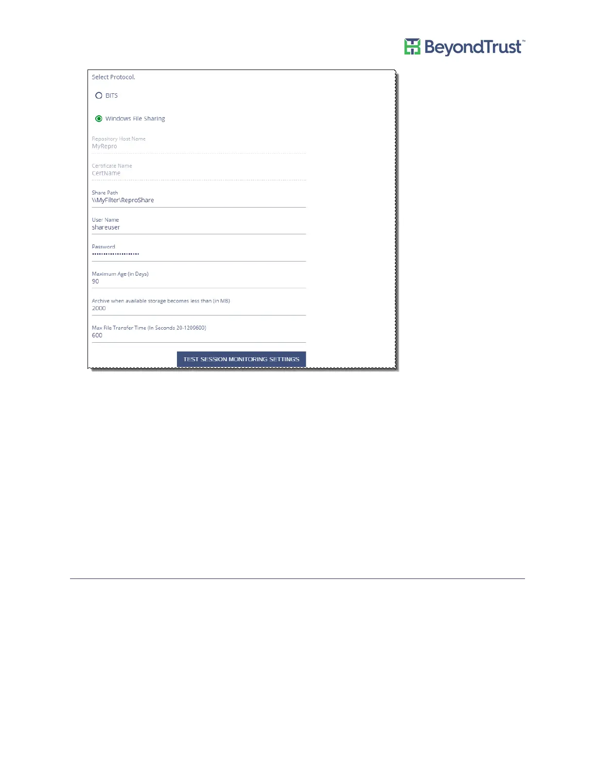 9. Click Test Session Monitoring Settings to ensure the repository computer is set up correctly and can