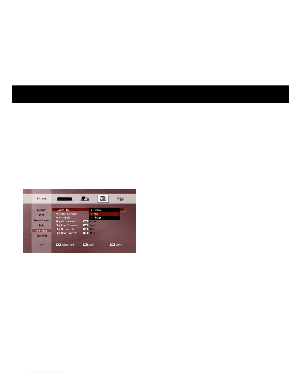 Ask: A pop-up dialog will ask whether or not to resume playback from