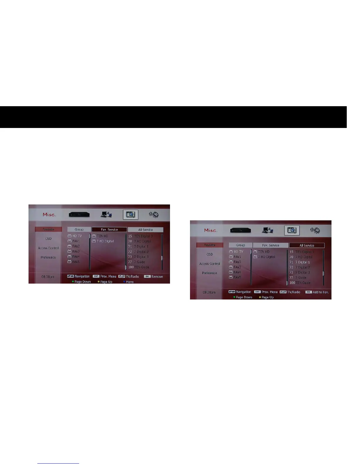 can change this list to TV service list or radio service list. If you want to
