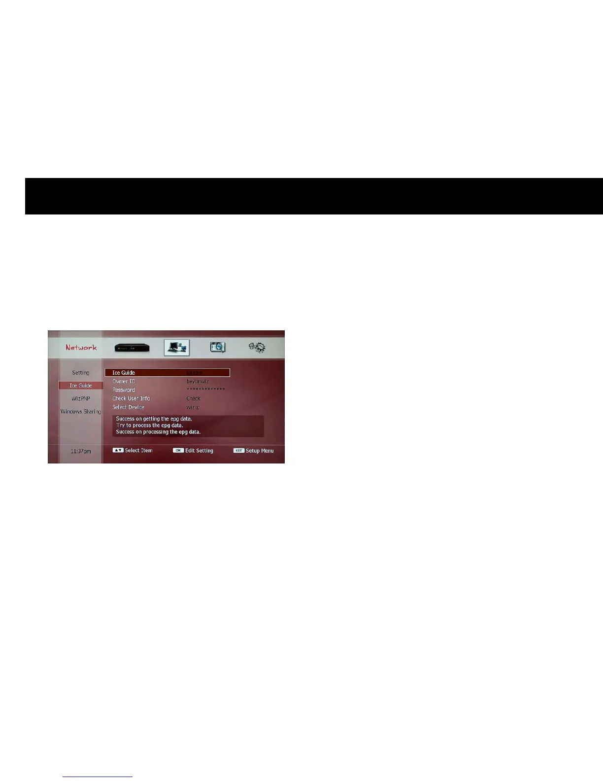 displayed and you can enter your ID of IceTV account.