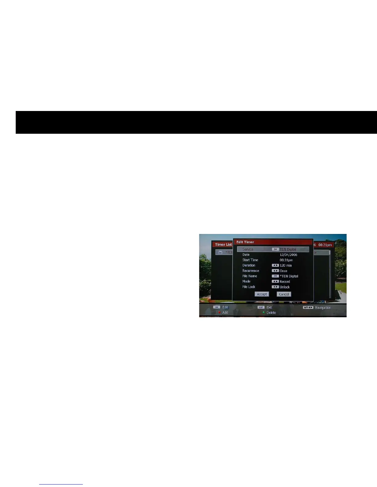 section of adding a new timer. Select “Accept” with the