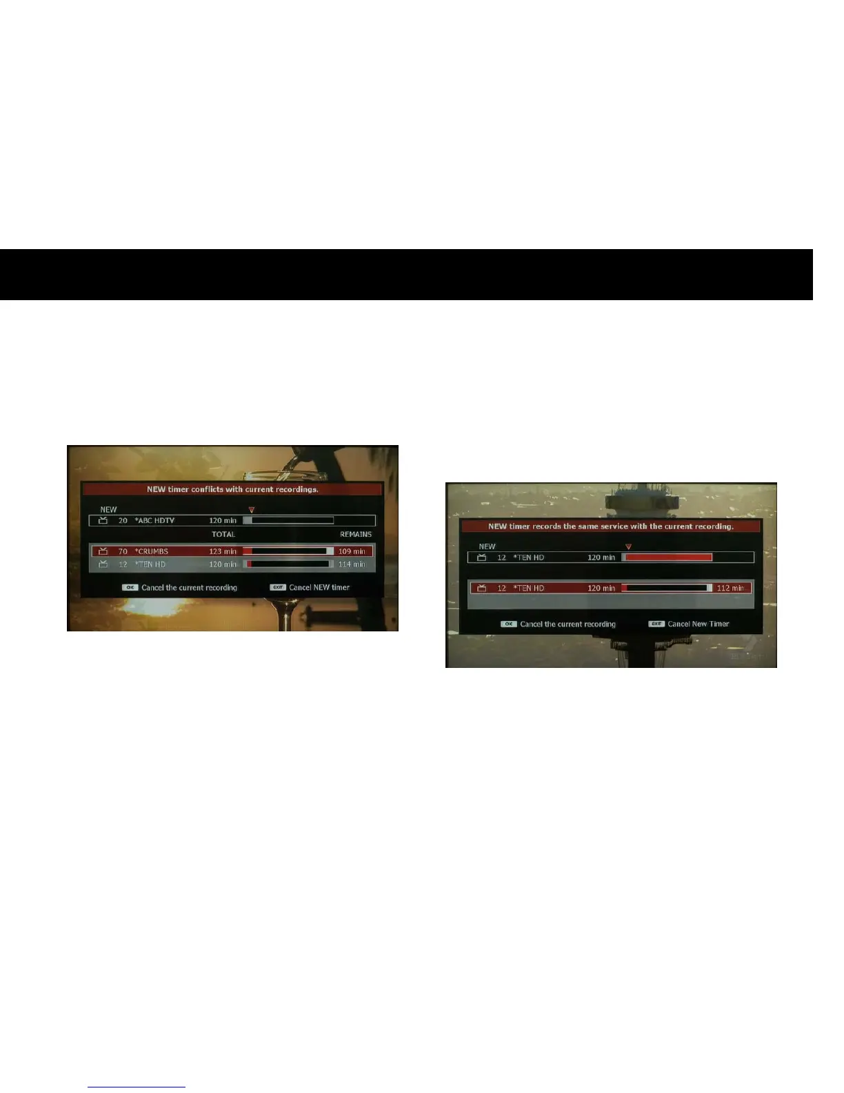 can cancel the new recording or timer recording and let the current two