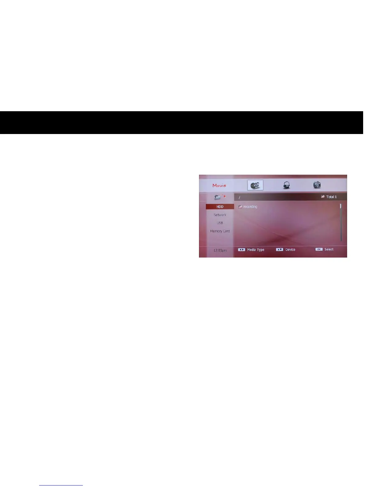 to play. If you select “Movie” icon on the top menu, only the movie files
