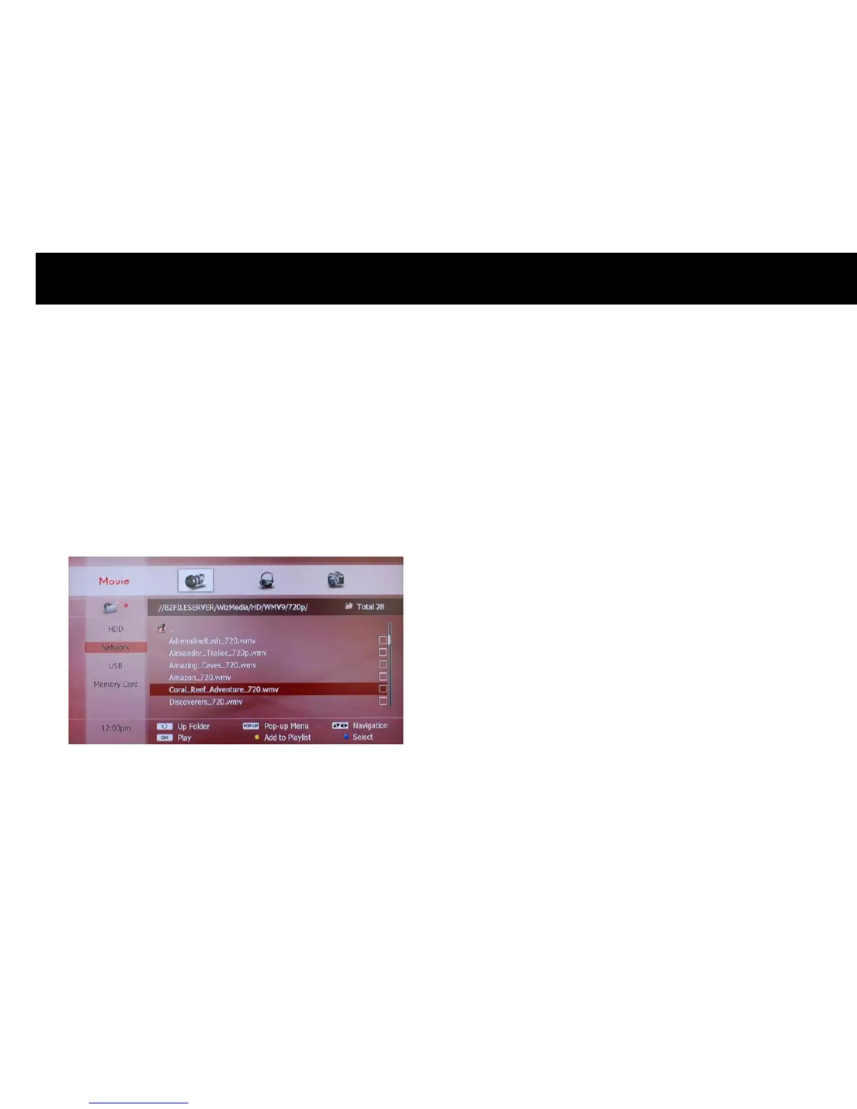 To play a movie, please select the “Movie” icon on the top menu and