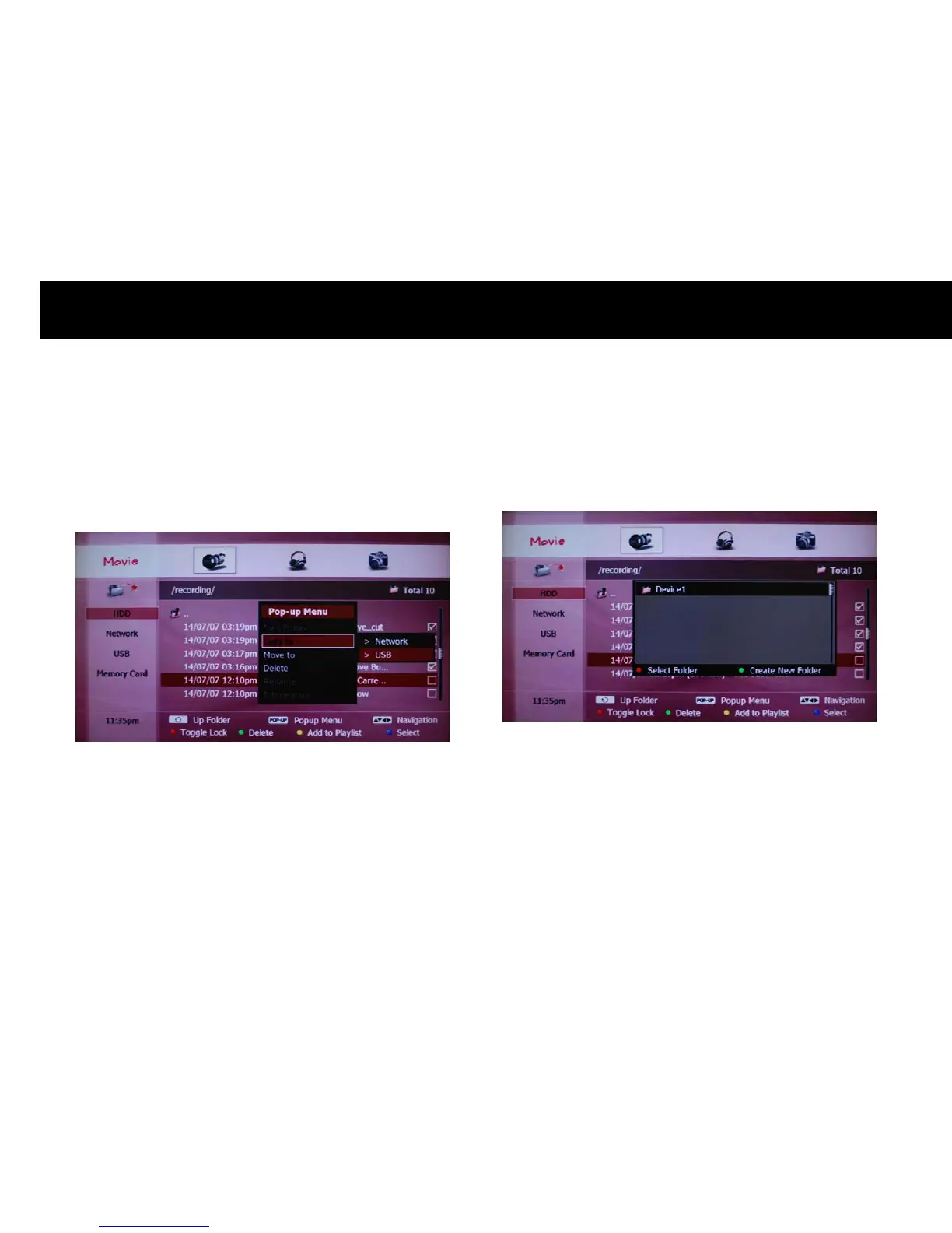 The USB storage devices connected to the DP-P2 will be listed. Please