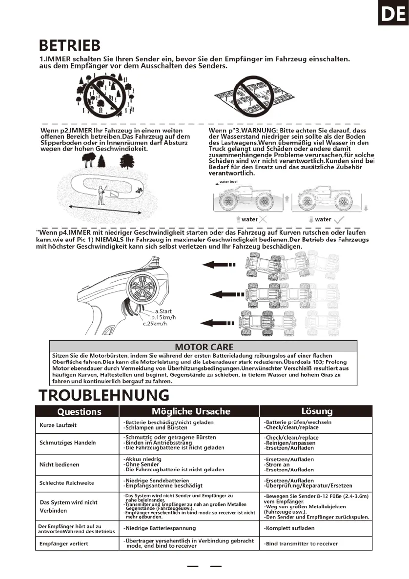 kann.wie auf Pic l) NIEMALS Ihr Fahrzeug in maximaler Geschwindigkeit bedienen.Der Betrieb des Fahrzeugs