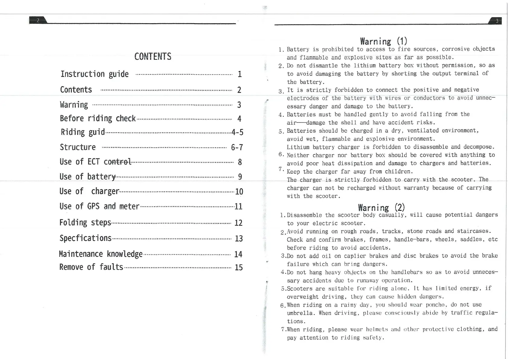 Specfications······················································