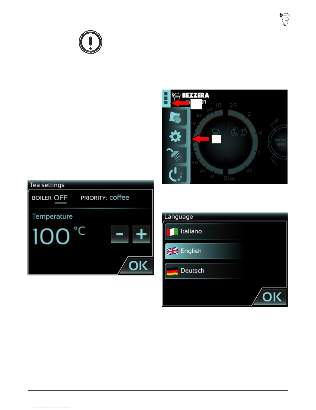 la chaudière, d’un minimum de +100°C à un