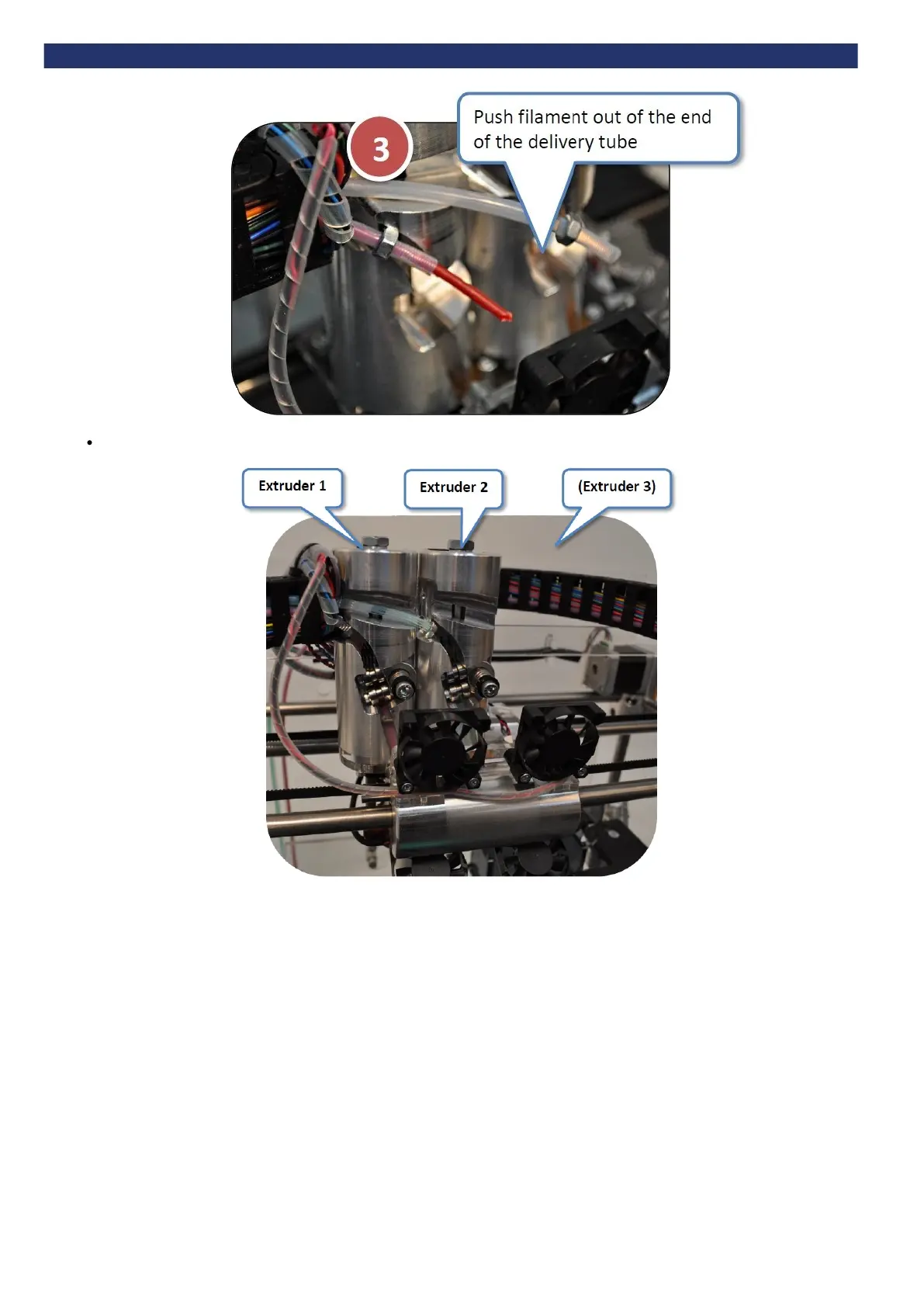 Check the filaments exit the tubes at the correct extruders: