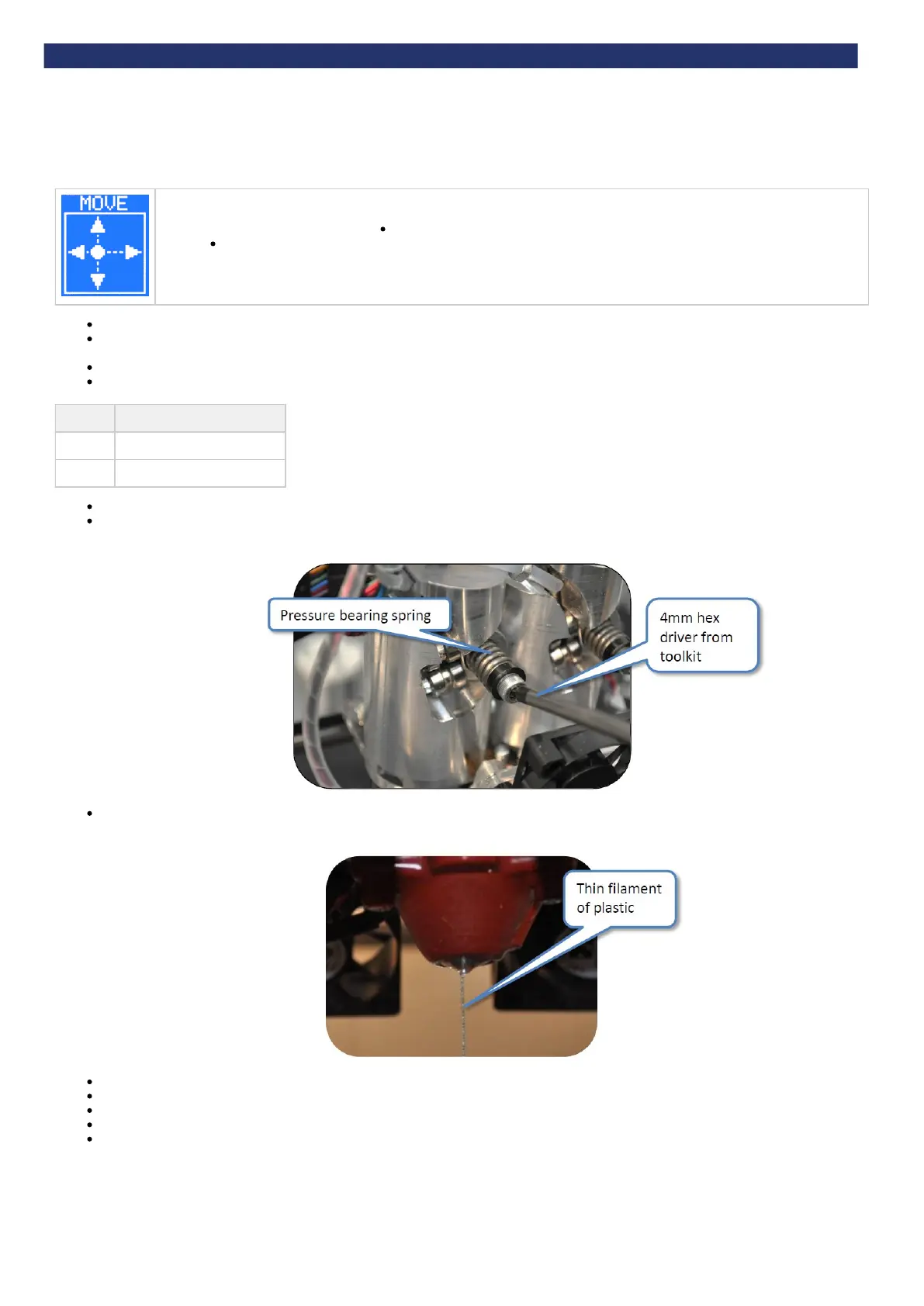 Examine the movement of the filament at the pressure bearing. It should slowly be driven towards the nozzle. If not, ensure that the spring