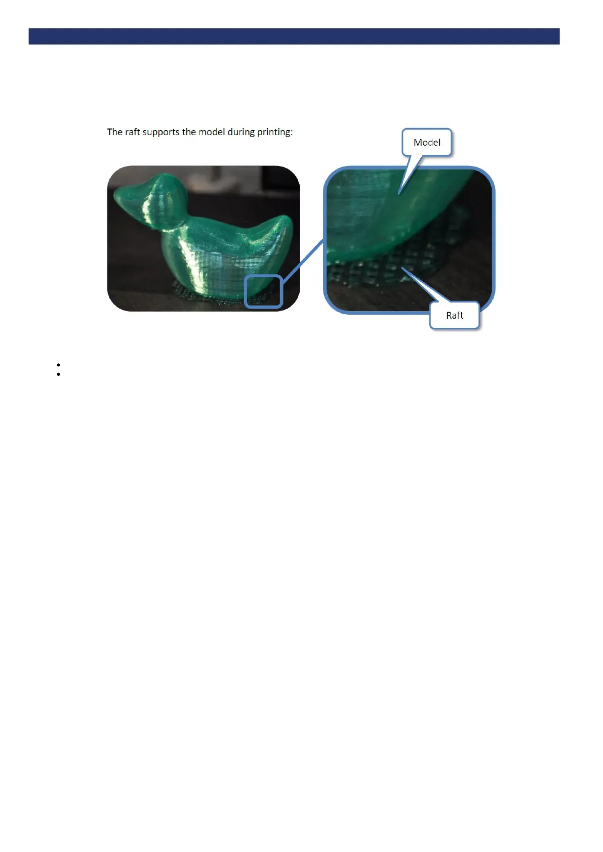 It is essential that a good raft is printed to guarantee a good build. Therefore the height of the hot-end nozzle over the bed for the first layer is critical: