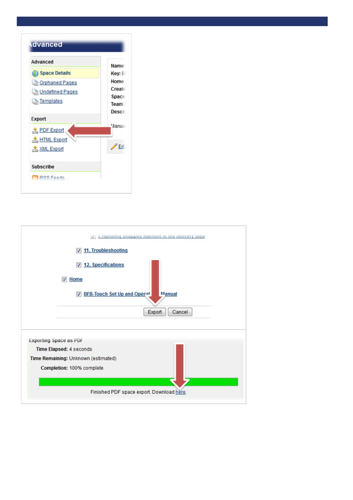 If you have a slow internet connection, it is possible to select individual sections of the manual to export, making it possile to download small